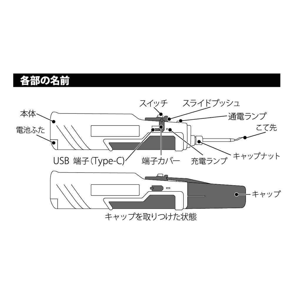 付属品:キャップ、USBケーブル1本 (USB2.0 Type-A / USB3.1 Type-C)こて先温度:最大約 280℃