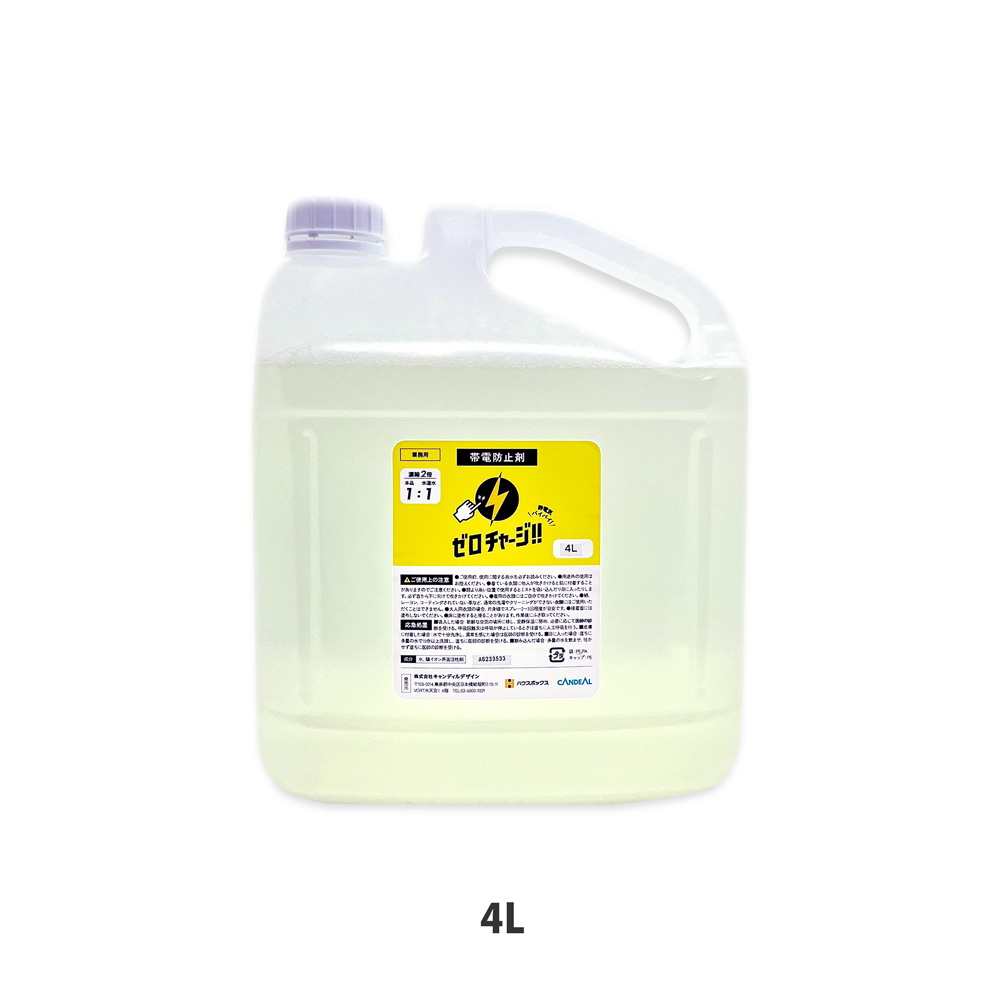スポンジを一日中カットするハードな製造現場でも、一日2回朝と昼、『ゼロチャージ』を塗布するだけで静電気が抑えられます!| サイズ | 全4種類 ・250ml ・250ml+スプレーボトルセット ・4L ・20L(コック付き) |