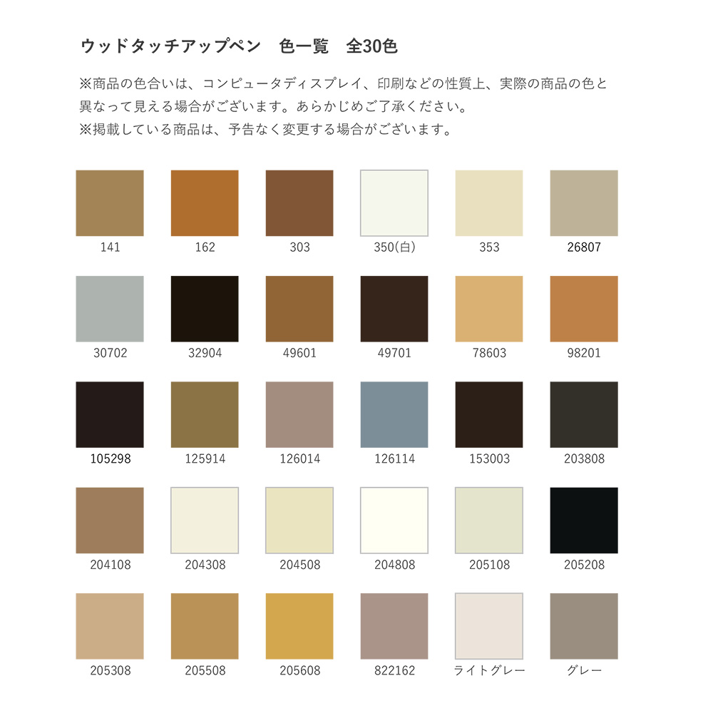 後継品 「ウッドタッチアップペン」 色品番(近似色) |